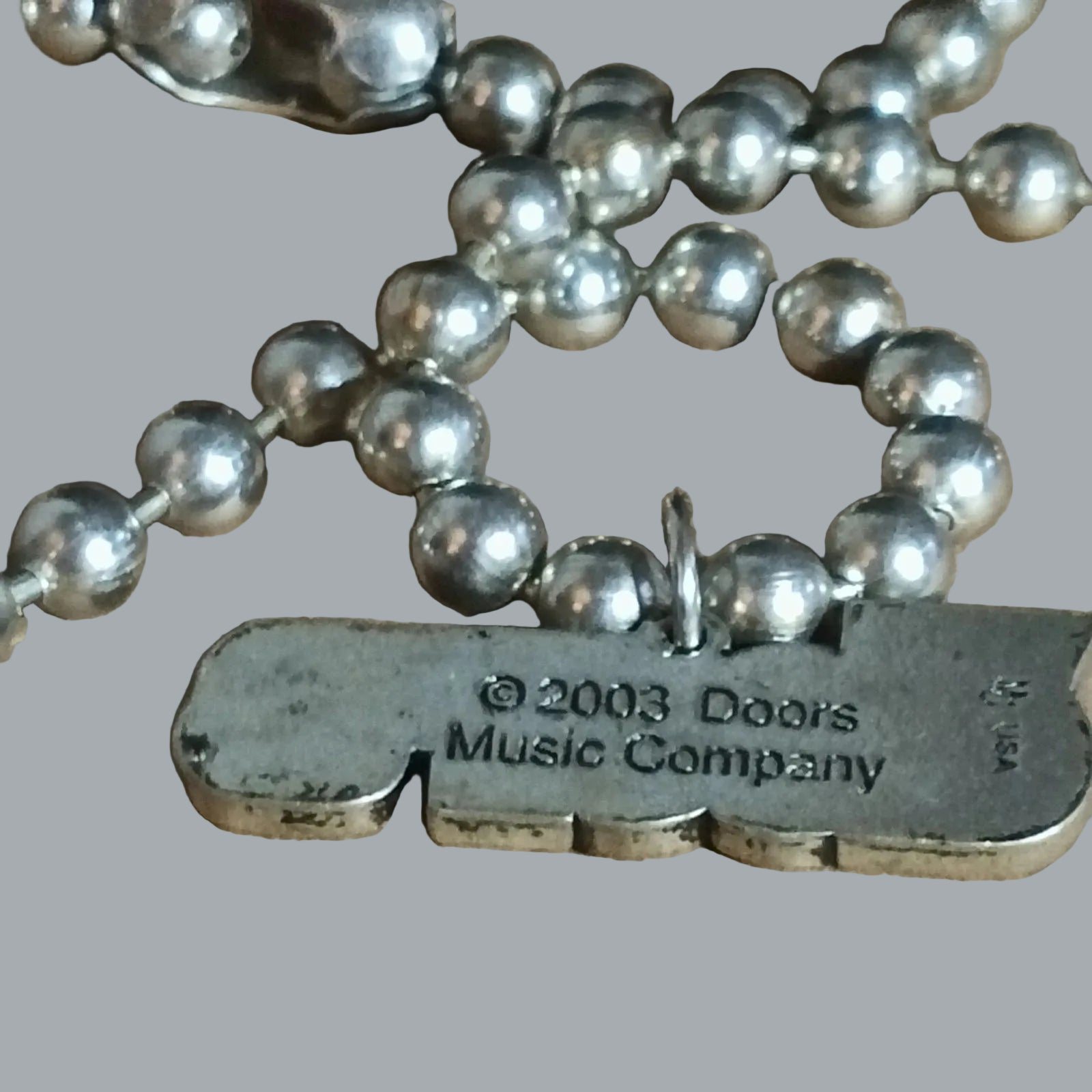 The Doors Necklace ©2003 Doors Music Company Logo Pendant Ball Chain Y2K