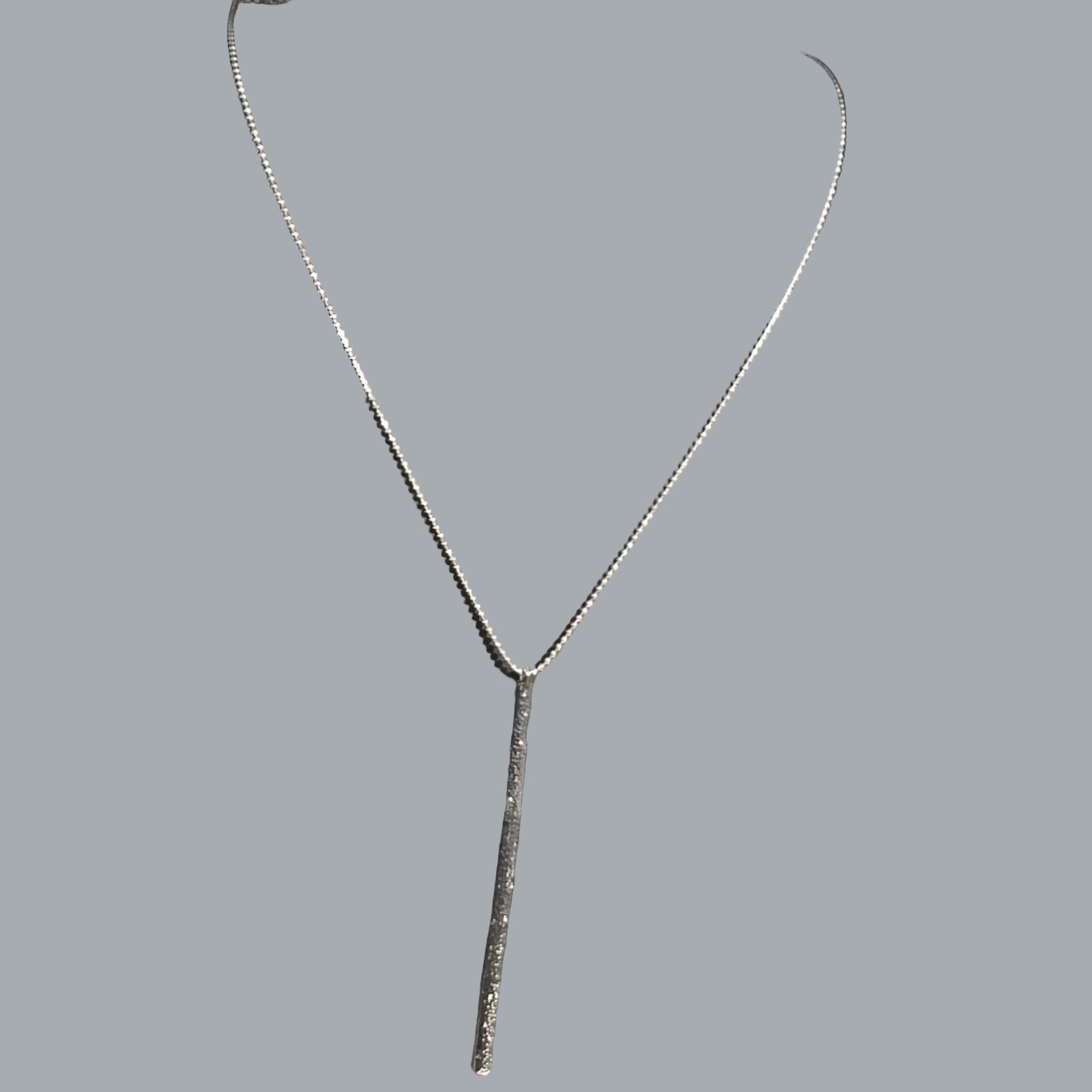 Elegant silver-tone necklace by The Limited featuring a sleek vertical bar pendant with clear rhinestones on a delicate ball chain. Adjustable lobster clasp with logo tag. Modern minimalist design — perfect for layering or everyday sparkle.