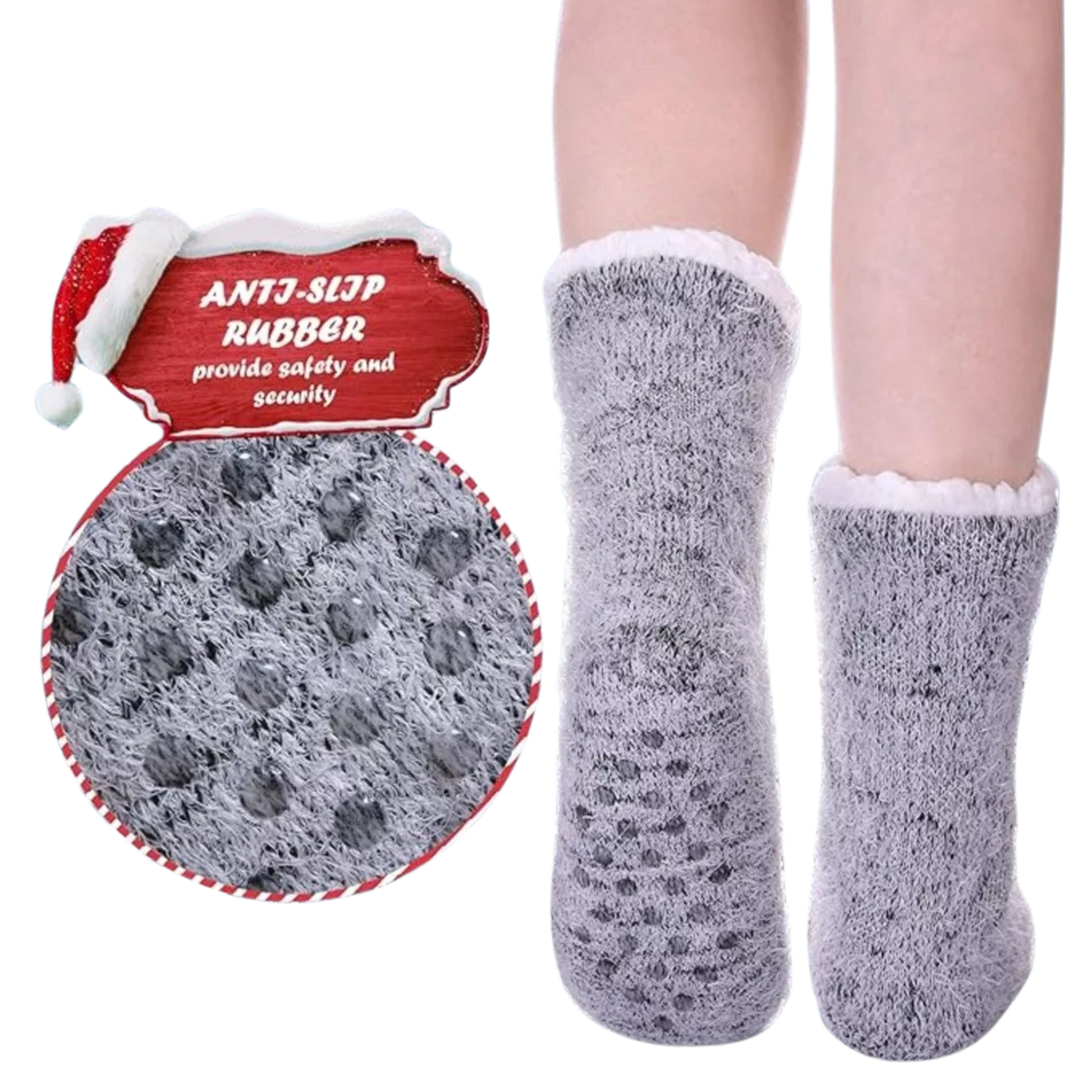 Winter Thick Slipper Socks with Grippers Non Slip Warm Fleece Lining