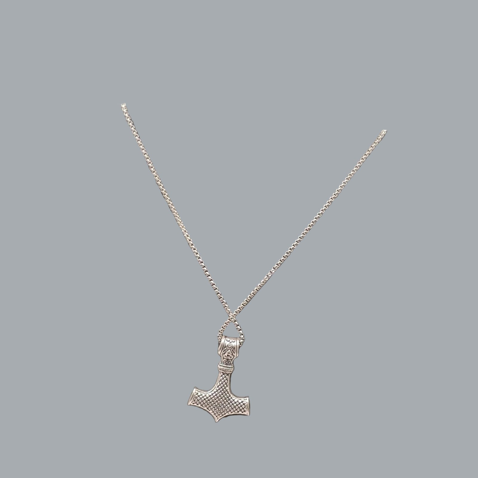 Unleash your inner Viking with this stunning Silvertone Thor's Hammer (Mjolnir) necklace! Featuring intricate Celtic knotwork, this 22" chain and amulet symbolize strength, protection, and heritage. A perfect gift for Norse mythology enthusiasts.