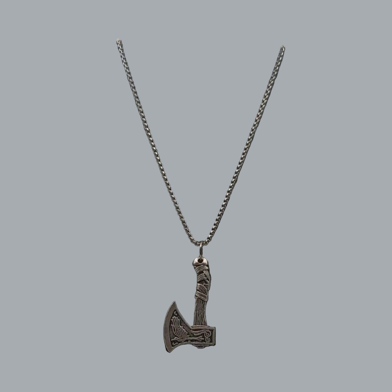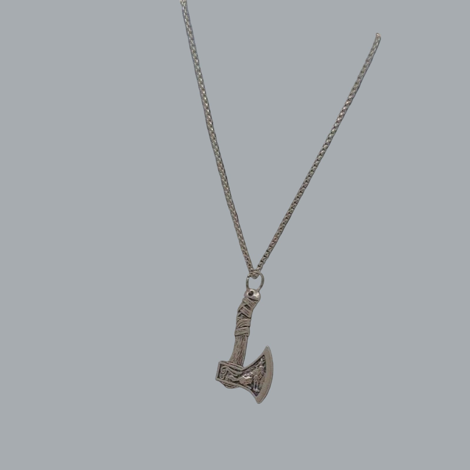 Wolf Axe Celtic Viking Amulet Necklace - Silvertone 22" Chain