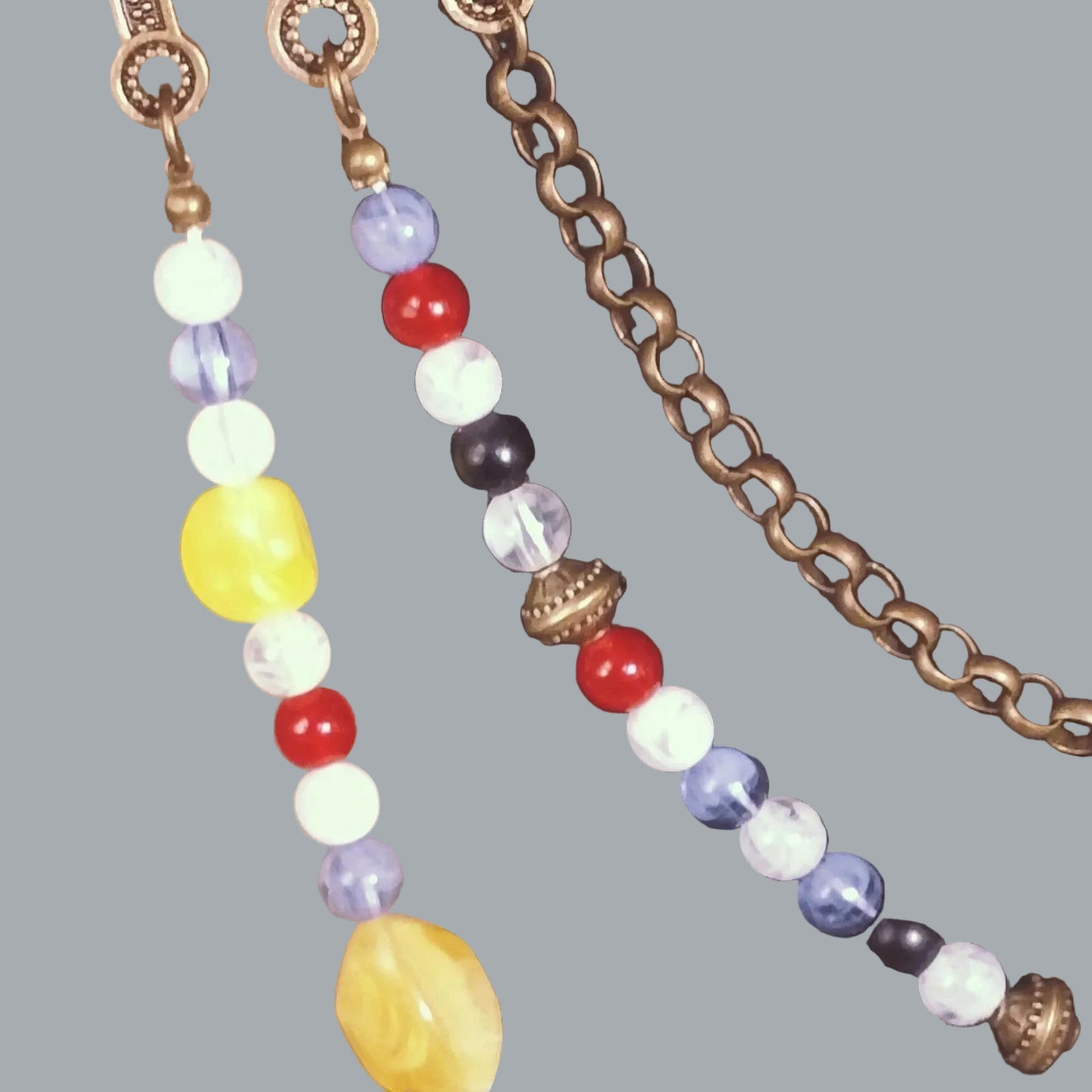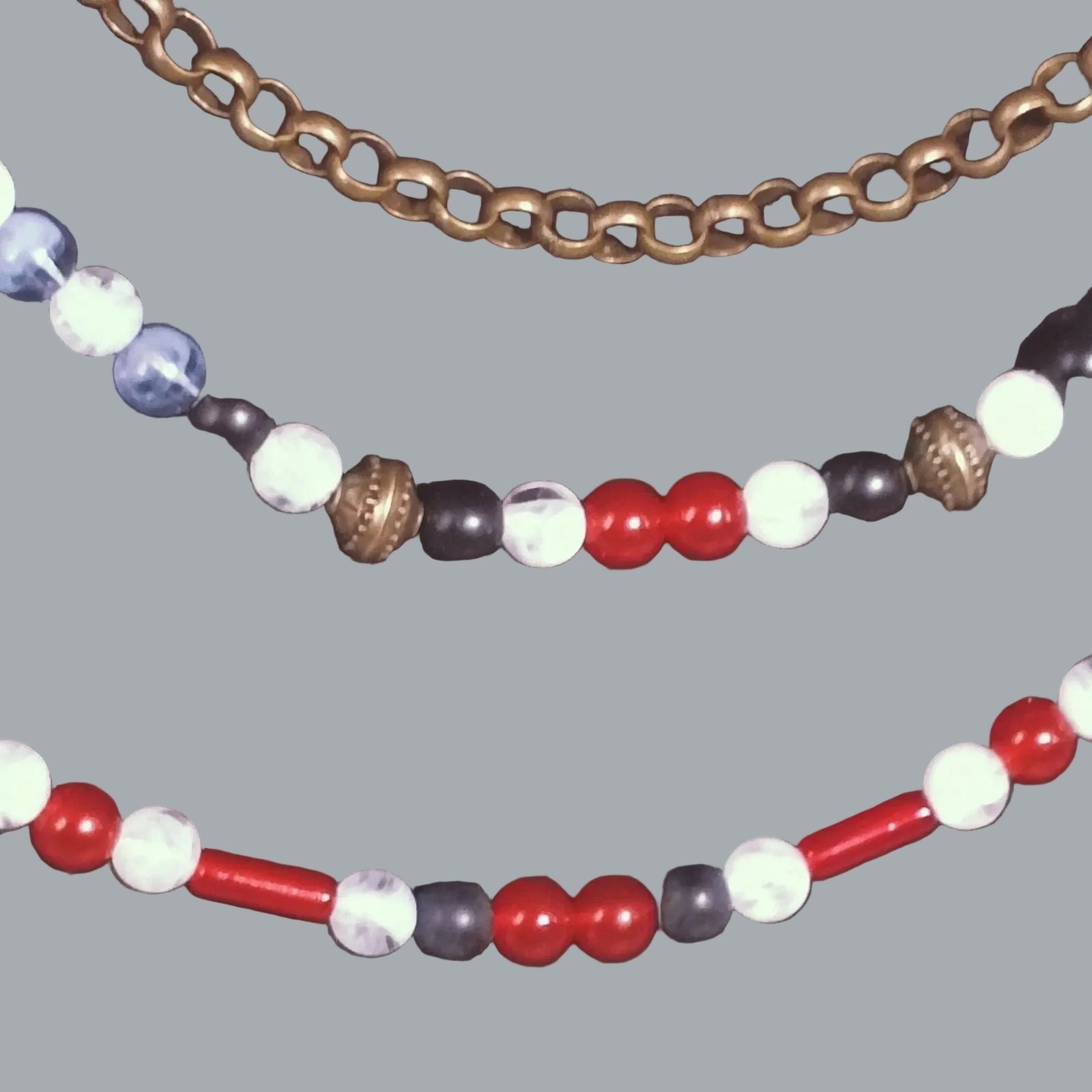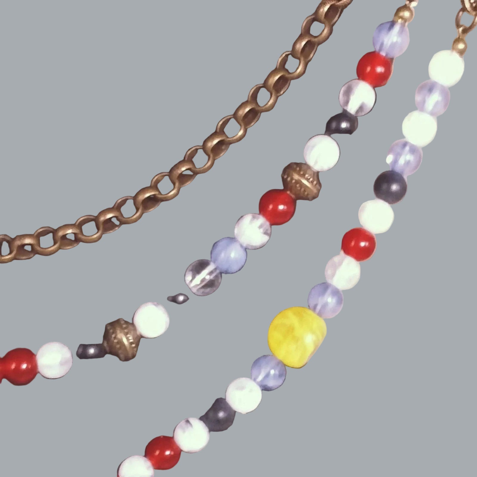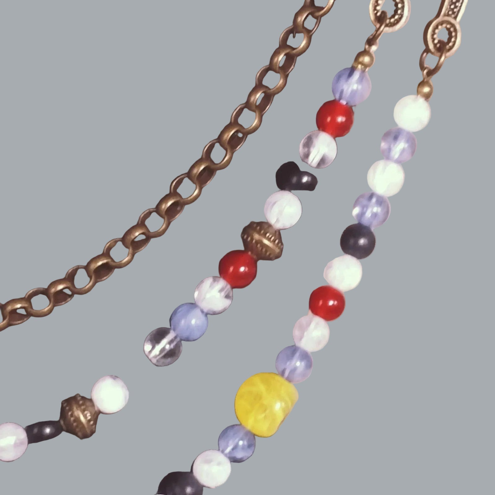 Beads in mixed colors (red/white/blue/black with yellow accents)