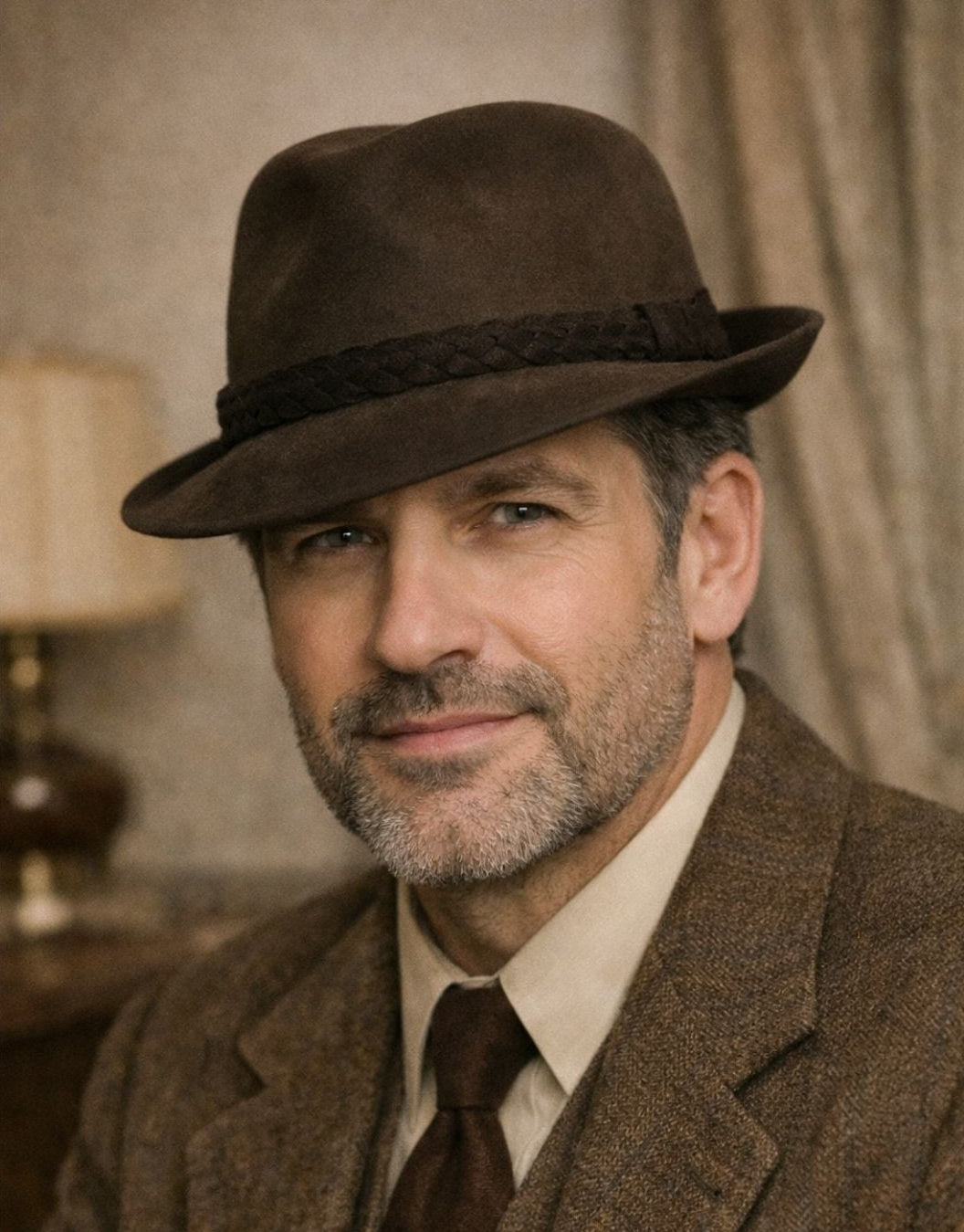 Style: classic fedora/trilby look with braided hatband