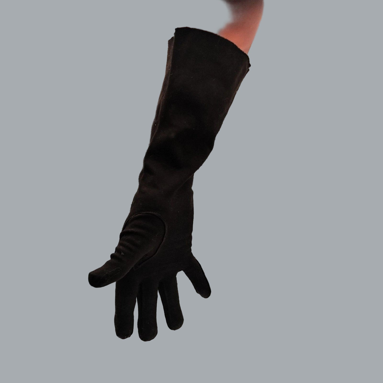 Elegant vintage brown cotton gloves, made in Italy, approx. 12" long for a chic mid-forearm / opera look. Soft, lightweight fabric with classic stitched detailing, perfect for retro outfits, cosplay, theatre costumes or refined evening wear. Timeless accessory for collectors and pin-up style.