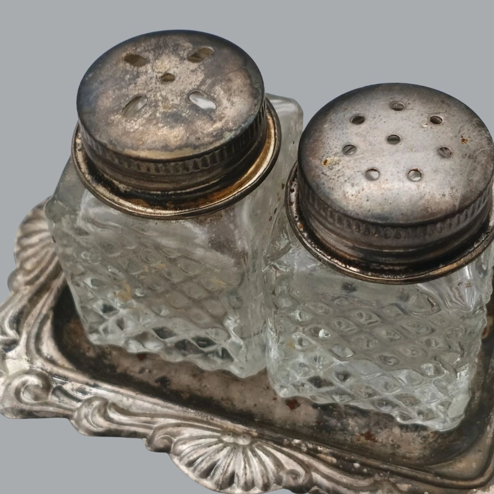 Vintage Glass Salt & Pepper Shakers with Silver-Plated Lids – Hong Kong