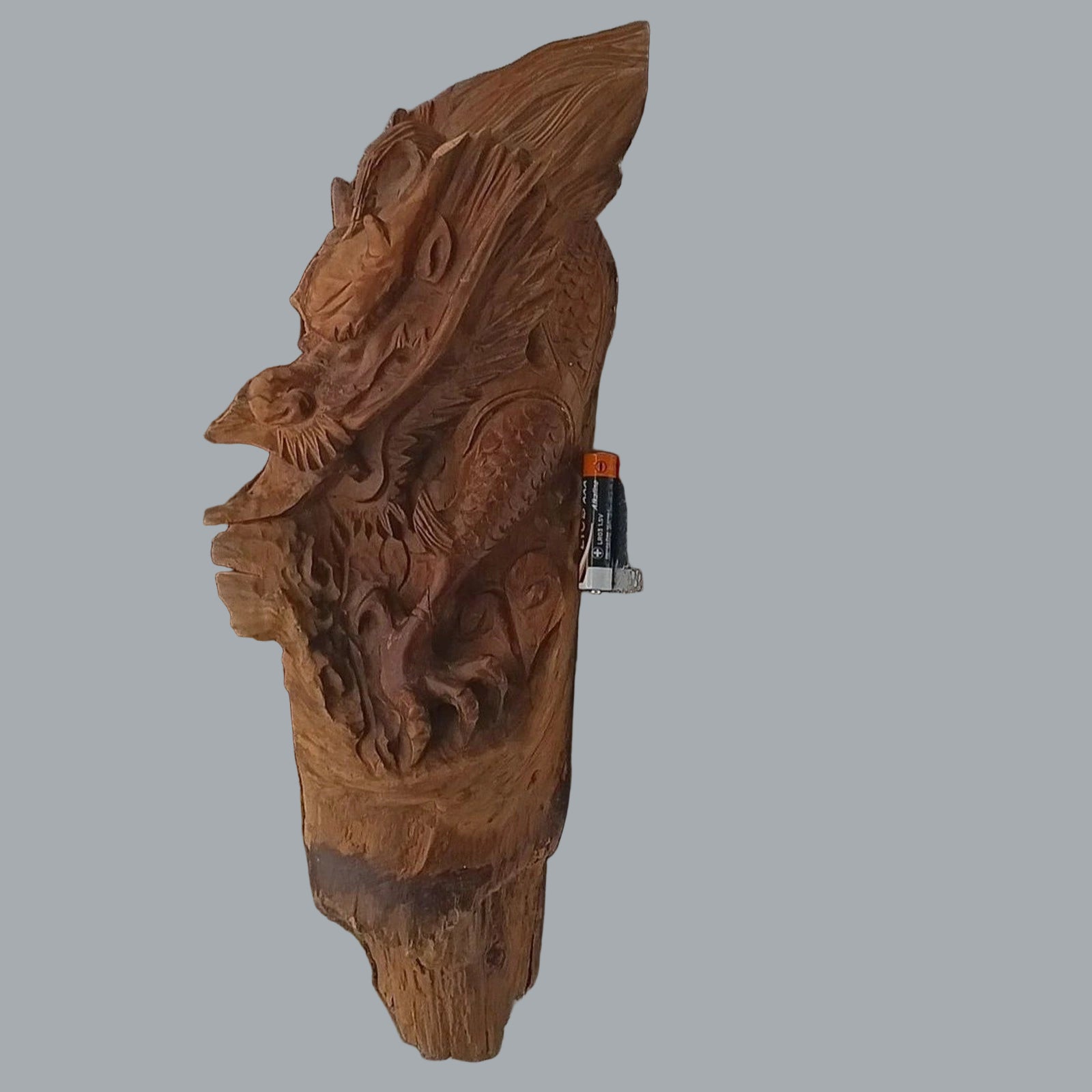 Vintage Hand Carved Wooden Dragon Wall Hanging Plaque Fantasy Art 13x5x2 in