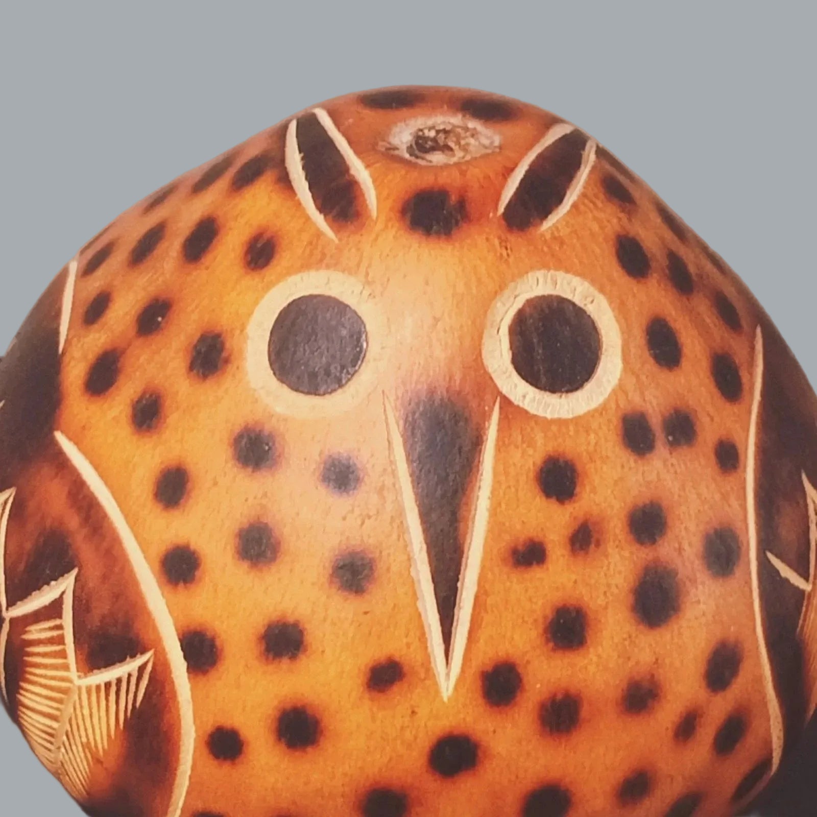 Vintage Hand Painted Owl Gourd Folk Art Peru 4x4 Andean Decor