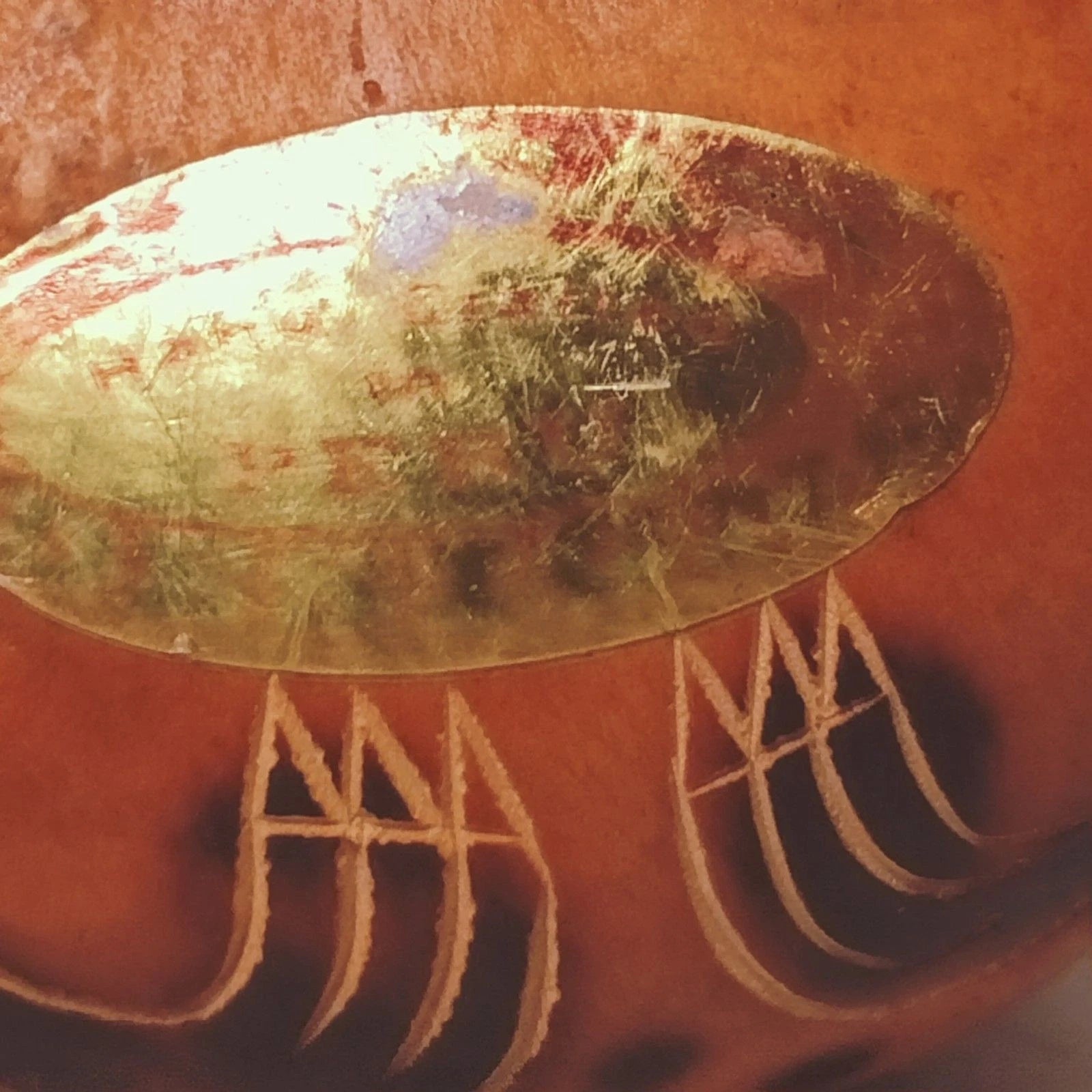 Vintage Inca Design Owl Gourd Hand Painted Andean Folk Art 4x4