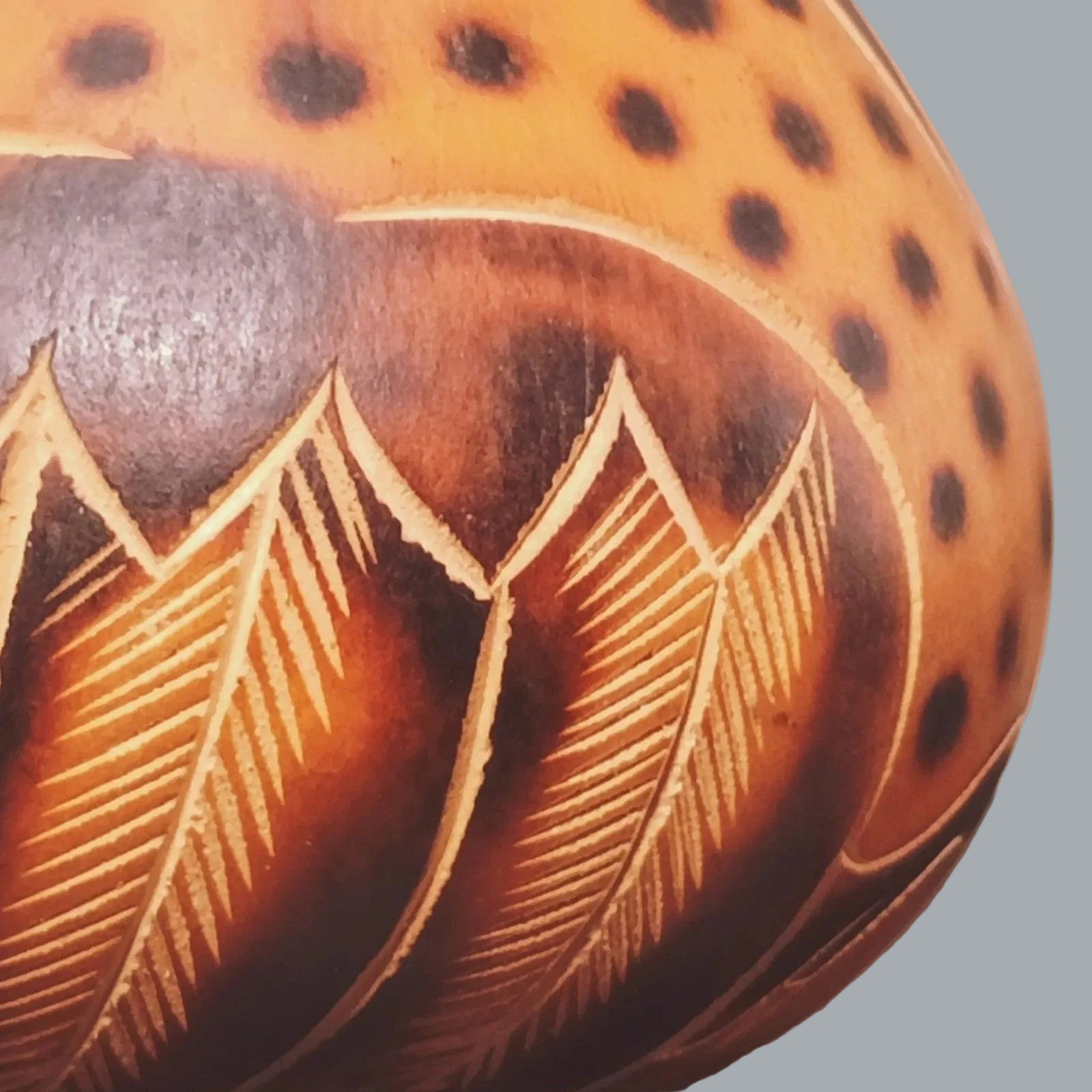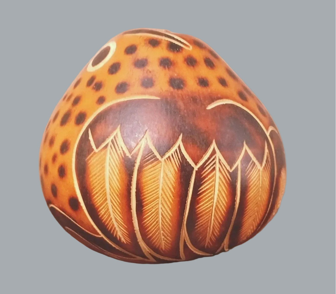 This type of gourd is commonly associated with Andean folk art, particularly Peru or Bolivia, and was often produced for decorative or souvenir use in the mid to late 20th century.