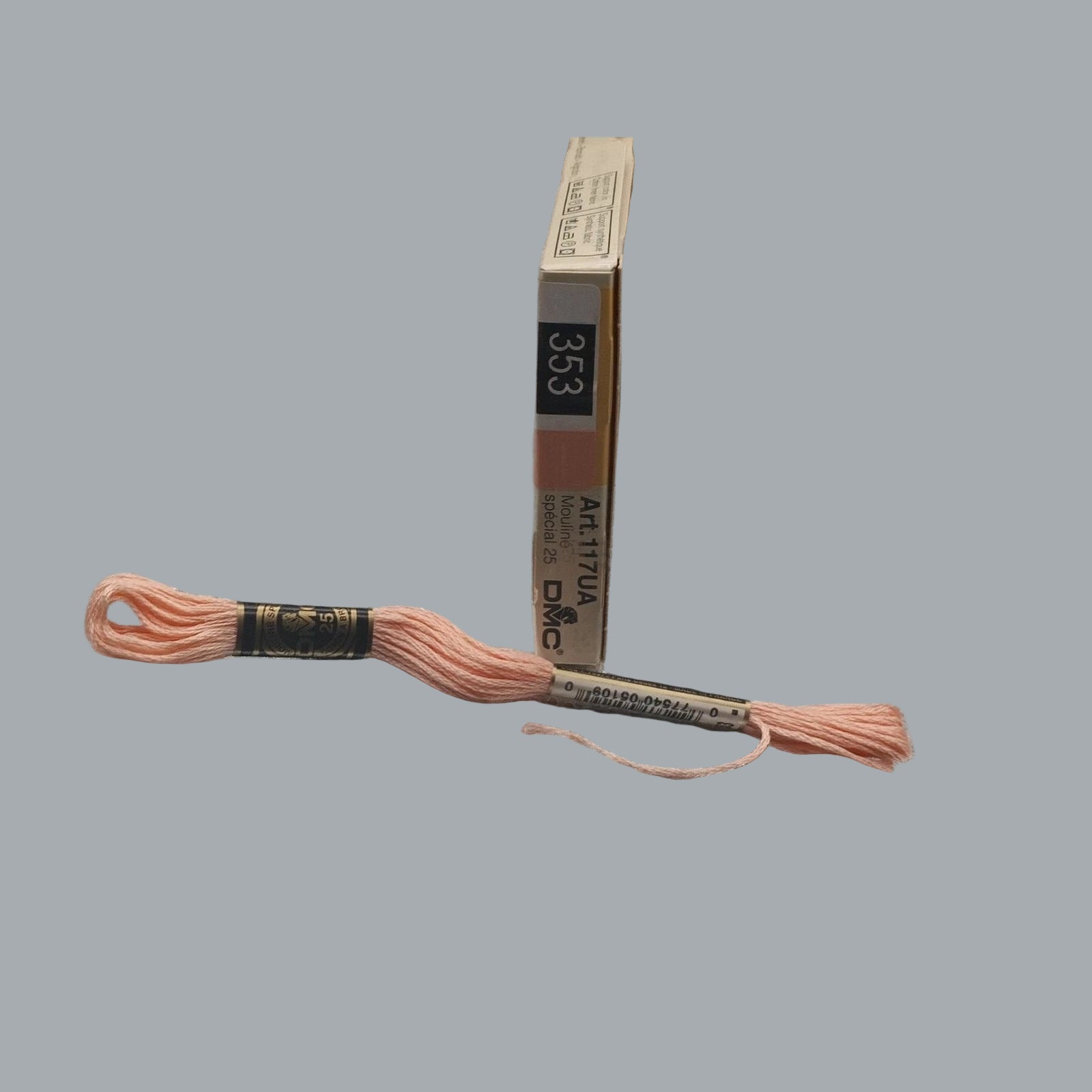 This listing is for one (1) new old stock box of DMC Mouline Special 25 embroidery floss in the color 353, Peach. This box contains 12 skeins of unused, 6-strand cotton floss. It was manufactured in France and has been preserved in its original box, which has some light wear from storage but has never been opened.